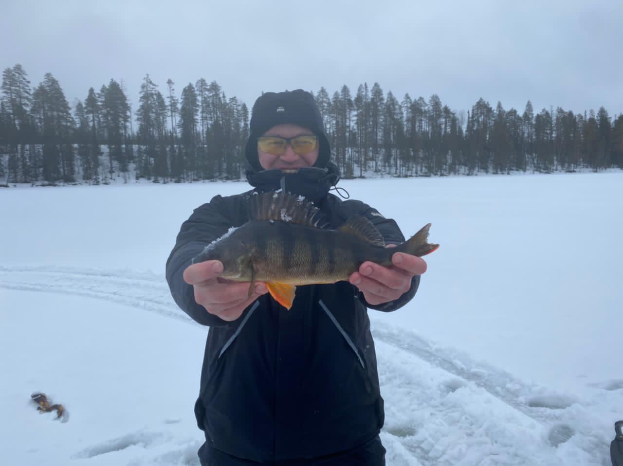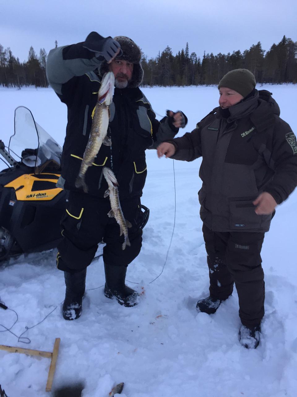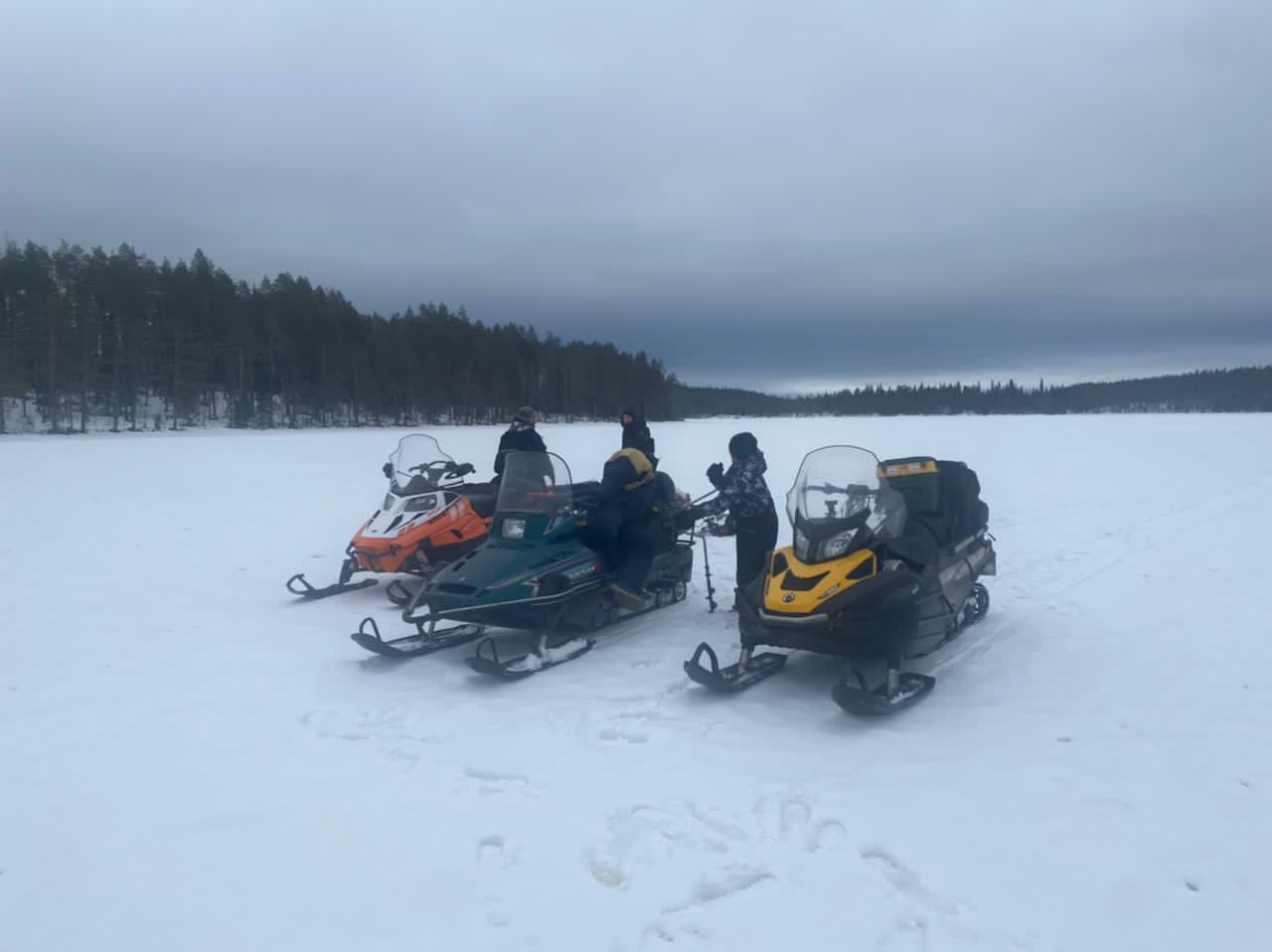 Выезд на рыбалку каждый день на снегоходах с санями по горизонтам озера на расстоянии не более 10 км, чтобы не тратить время зря, и поездка была комфортной.