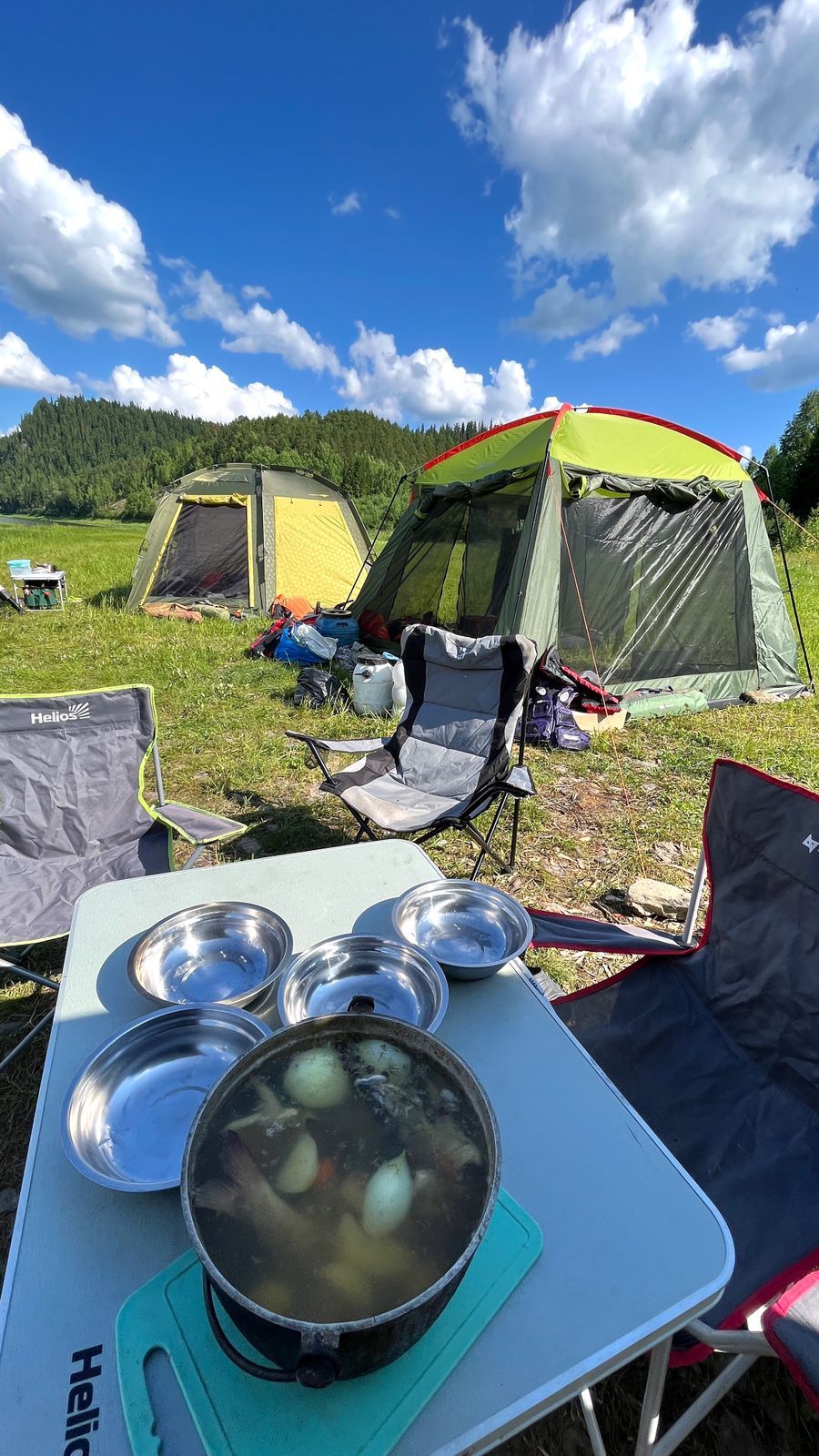 Все участники сплава участвуют в организации лагеря. Пешие походы по ручьям за трофейным хариусом.