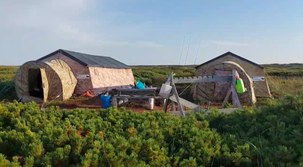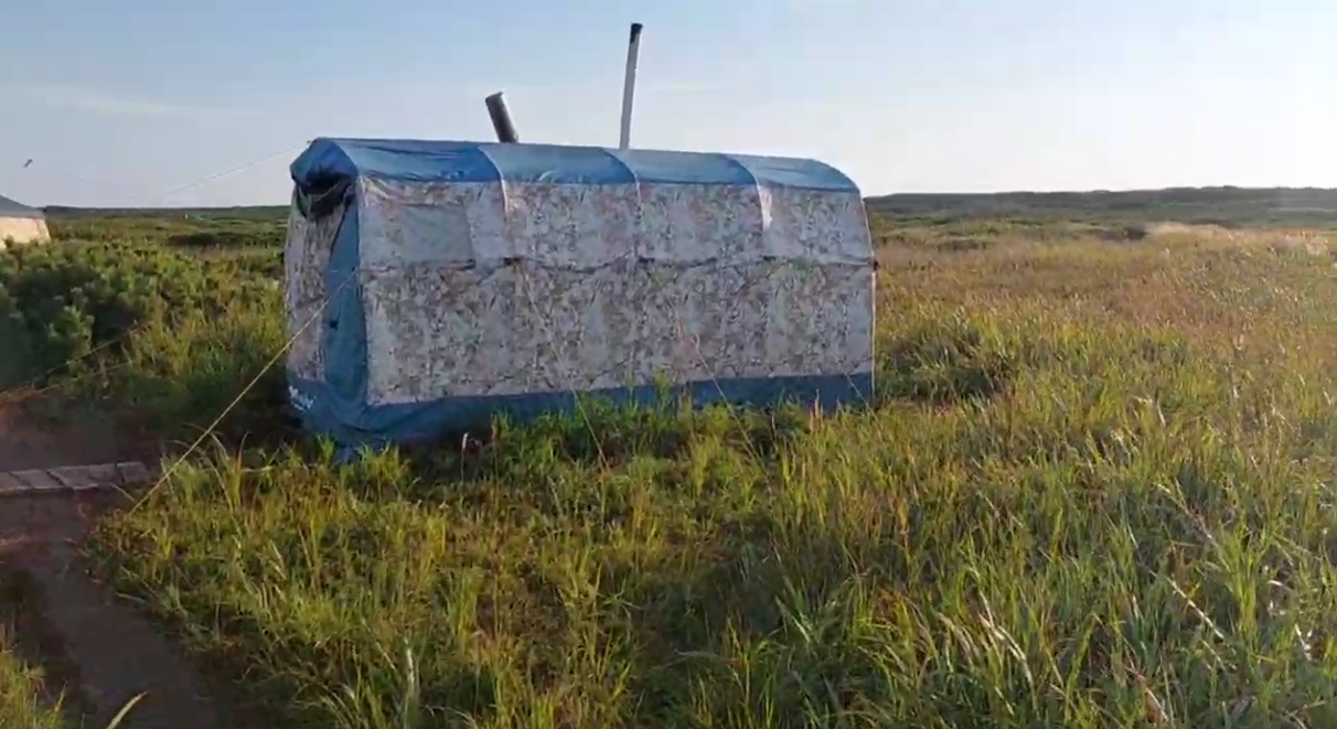 Внутри палатки размещение по 4 человека. отапливается фенами, внутри палатки имеются полы.